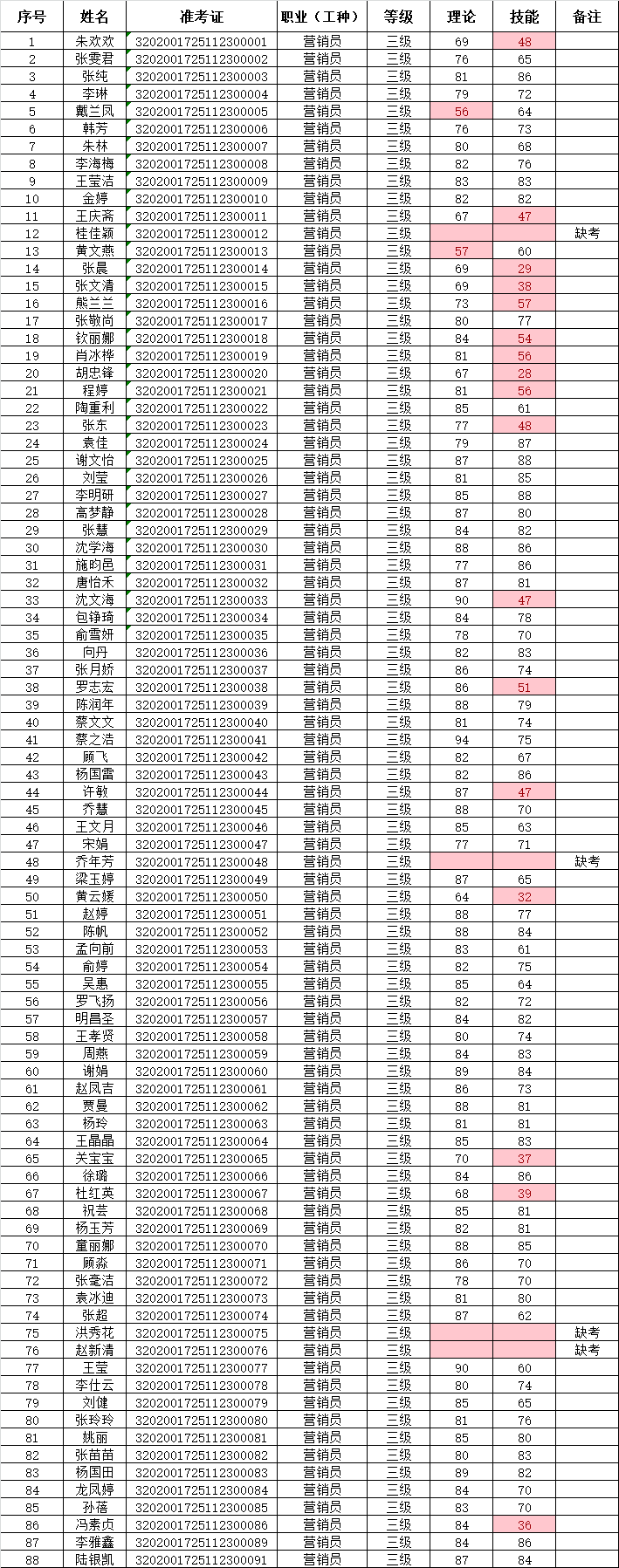 2025年11月23日,88名企業(yè)人員參加營銷員三級技能等級認(rèn)定考試(考試批次:2025-32020017-00044),共計65名成績獲得合格?,F(xiàn)將考試成績公示如下: