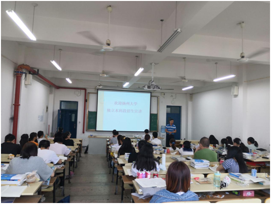 為進(jìn)一步增強(qiáng)我校學(xué)生對(duì)揚(yáng)州大學(xué)專接本獨(dú)立本科段學(xué)習(xí)的認(rèn)識(shí),拓寬學(xué)生的升學(xué)渠道,6月5號(hào)上午揚(yáng)州大學(xué)焦勝利主任一行來我校進(jìn)行宣講。