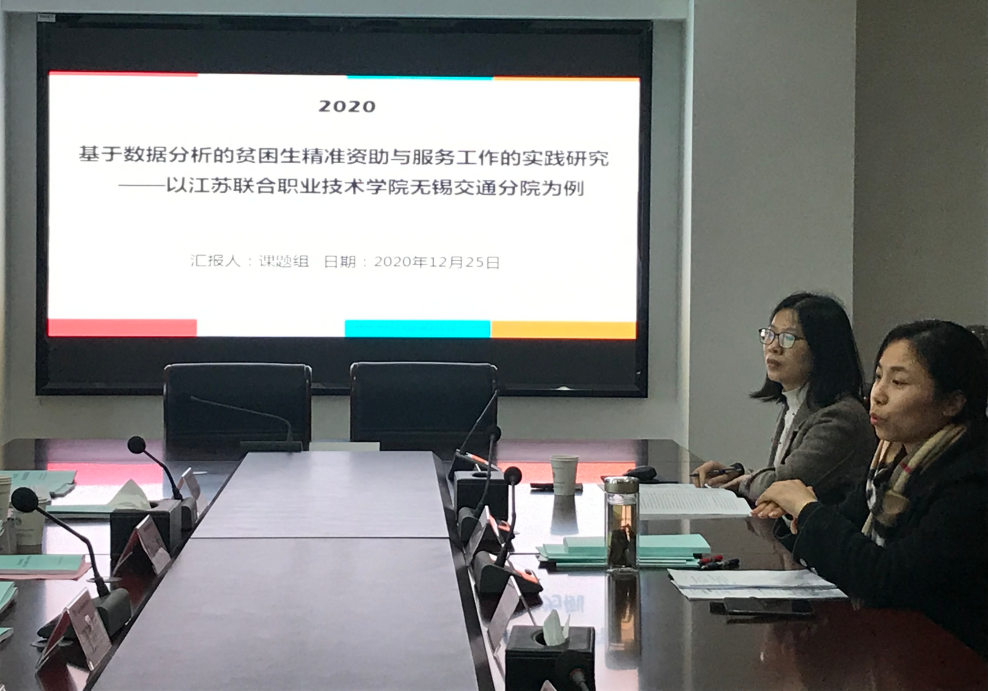 此次結(jié)題課題有吳雪琴、蔣紅梅主持的省“十三五”規(guī)劃學(xué)生資助專項《基于數(shù)據(jù)分析的貧困生精準(zhǔn)資助與服務(wù)工作的實踐研究——以江蘇聯(lián)合職業(yè)技術(shù)學(xué)院無錫交通分院為例》,尹愛華主持的省教改課題《產(chǎn)教融合背景下新能源汽車實訓(xùn)基地建設(shè)的研究與實踐》共2項。鑒定會上,根據(jù)鑒定要求,課題組從研究目標(biāo)和意義、過程、主要結(jié)論與分析等方面進(jìn)行重點匯報,評審專家逐一進(jìn)行提問和建議,課題組進(jìn)行了答辯。評審專家一致認(rèn)為兩項課題研究成果豐富,具有一定的實踐指導(dǎo)意義。同時,也針對課題研究中存在的問題進(jìn)行了指導(dǎo),提出了中肯的意見和建議。