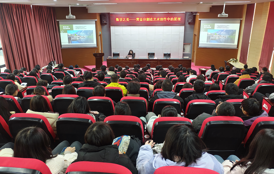 12月17日下午,教務(wù)處副處長許瑩霞副教授為全校師生做“數(shù)學(xué)之美——黃金分割在藝術(shù)創(chuàng)作中的展現(xiàn)”專題講座,近180名師生到場聆聽。
