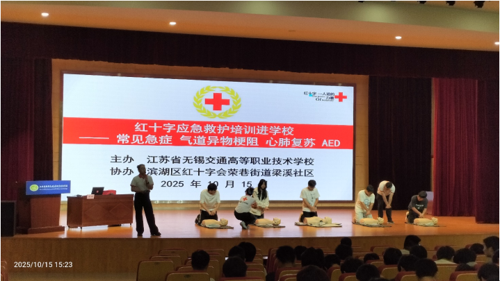 2025年10月15日,汽車工程學(xué)院在學(xué)校大禮堂舉辦了一場(chǎng)意義非凡的紅十字應(yīng)急救護(hù)培訓(xùn)。學(xué)院聯(lián)合濱湖區(qū)紅十字會(huì)榮巷街道梁溪社區(qū)特別邀請(qǐng)無錫市紅十字會(huì)四星救護(hù)培訓(xùn)師蔣小燕老師,為學(xué)生們帶來實(shí)用急救知識(shí)與技能。