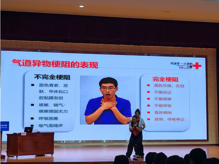 培訓(xùn)伊始,蔣老師以一段精彩的視頻引入,生動(dòng)講述紅十字會(huì)的起源與標(biāo)志意義。從戰(zhàn)爭(zhēng)時(shí)期救護(hù)傷兵的艱難起步,到如今在全球人道救援中的重要作用,學(xué)生們深刻感受到紅十字運(yùn)動(dòng)守護(hù)生命的偉大使命,為后續(xù)學(xué)習(xí)奠定了思想基礎(chǔ)。