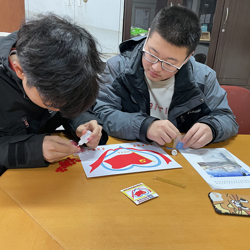 活動(dòng)開始之初,學(xué)生以小組為單位,選取手工材料,通過合作互助,完成手工。與此同時(shí),指導(dǎo)老師對(duì)其進(jìn)行黨徽介紹以及黨史宣講,使同學(xué)們?cè)谑止ぶ谱鞯耐瑫r(shí),增加對(duì)黨的認(rèn)識(shí)。