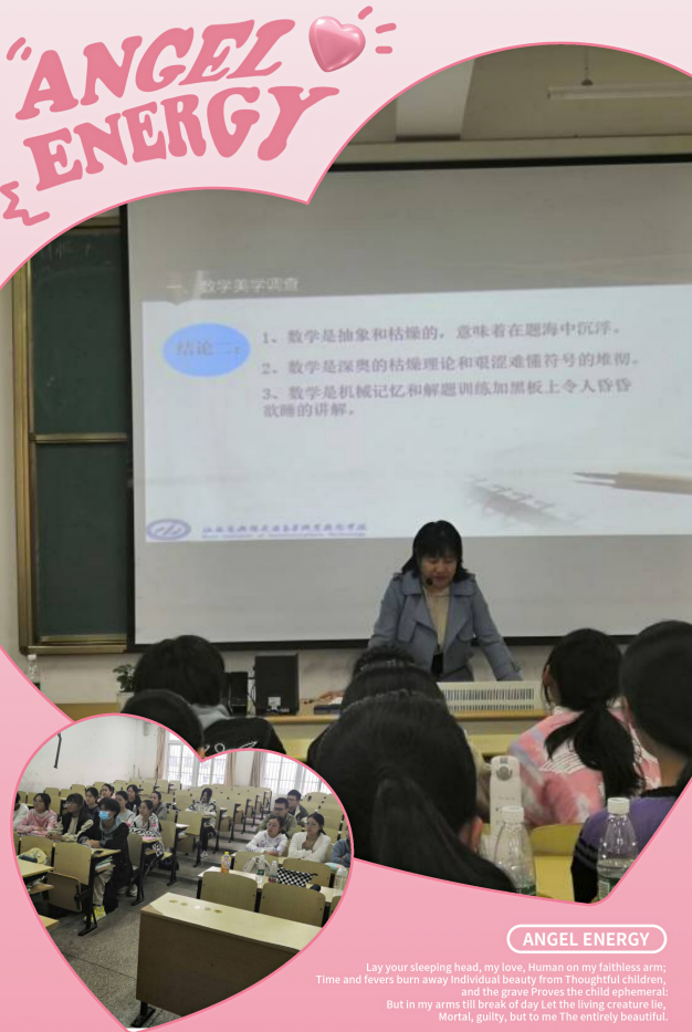 通過此次活動,同學(xué)們了解了數(shù)學(xué)美的各種形態(tài),包括文化藝術(shù)美、對稱美、簡潔美、和諧美、奇異美、突變美、創(chuàng)新美、發(fā)展美等,真正地走近數(shù)學(xué),進一步激發(fā)了學(xué)生對數(shù)學(xué)的熱情,吸引更多的學(xué)生投入到對數(shù)學(xué)之美的探索中。
