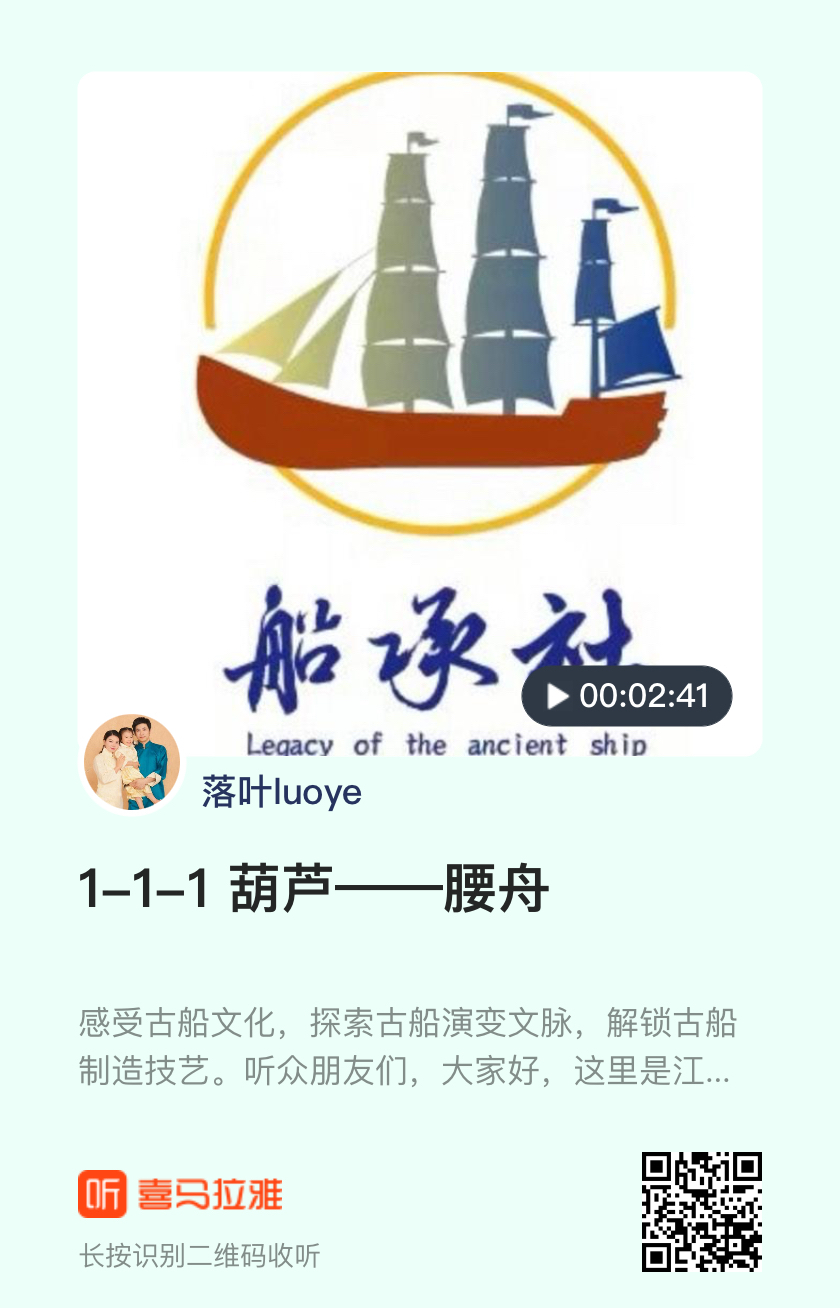 船文化”系列音頻欄目正是在這種情況下萌芽、誕生,本欄目將帶你用耳朵感受古船文化,探索古船演變,解鎖古船制造。