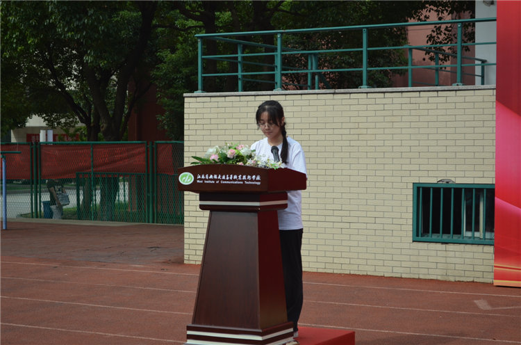 開學(xué)典禮在莊嚴(yán)的國歌聲中拉開序幕。滕蓓老師代表全校教師對新生的到來表示歡迎,她從傳承和發(fā)揚(yáng)工匠精神和愛嚴(yán)相濟(jì)的學(xué)生管理兩個(gè)方面分享了自己的心得。新生代表信息管理學(xué)院周佳怡代表全體2018級新生表態(tài)發(fā)言,號召全體新生發(fā)揚(yáng)行知立身,師表立教的校訓(xùn)及崇德、重技、務(wù)實(shí)、創(chuàng)新的精神,學(xué)會認(rèn)知、學(xué)會做事、學(xué)會做人。學(xué)長盈康向18級新生發(fā)出倡議:要愛國、感恩、自強(qiáng)、求真、實(shí)干、自控、合理安排時(shí)間、參加社會實(shí)踐、早做職業(yè)規(guī)劃。