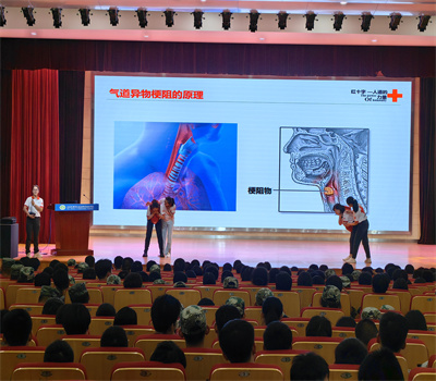 為進一步提高學生安全防范意識以及應對突發(fā)事件的自救互救能力,同時豐富校園軍訓活動內(nèi)容,9月22日下午,學校邀請無錫市濱湖區(qū)紅十字會救護師走進學校開展應急救護普及培訓,學校2000余名新生參加了培訓。
