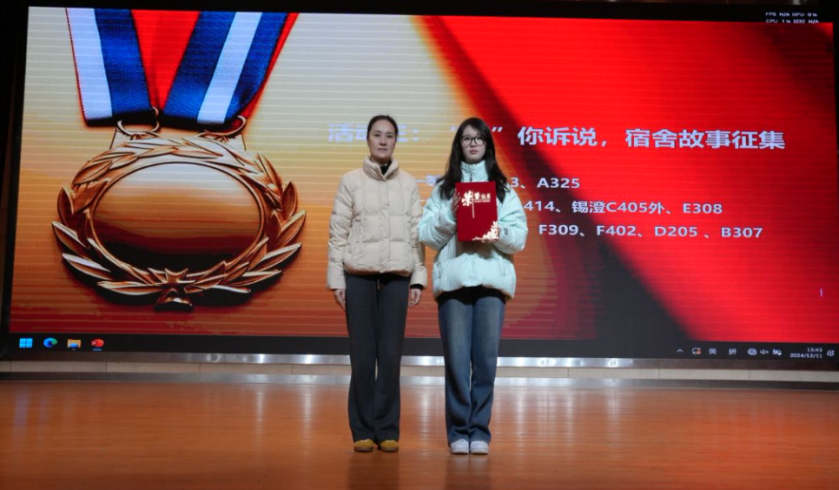 12月11日下午,我校2024年“宿舍文化節(jié)”評(píng)比頒獎(jiǎng)儀式暨宿舍長(zhǎng)培訓(xùn)講座在大禮堂舉行。學(xué)生工作處副處長(zhǎng)籍鑫慧,后勤管理處宿舍負(fù)責(zé)人,銀城物業(yè)總經(jīng)理,各學(xué)院學(xué)工領(lǐng)導(dǎo)參加頒獎(jiǎng)儀式,并為獲得獎(jiǎng)項(xiàng)的寢室學(xué)生代表發(fā)獎(jiǎng)狀和獎(jiǎng)品。