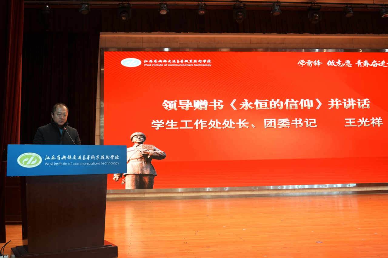 王光祥向各學(xué)院團(tuán)總支書(shū)記贈(zèng)送書(shū)籍《永恒的信仰》,并作動(dòng)員講話。他指出,雷鋒精神是永恒的財(cái)富,新時(shí)代青年要深刻把握雷鋒精神的時(shí)代內(nèi)涵,將專業(yè)技能與志愿服務(wù)相結(jié)合,在奉獻(xiàn)中提升自我、服務(wù)社會(huì)。他對(duì)全體志愿者提出三點(diǎn)希望:一是筑牢信仰之基,做雷鋒精神的傳承者;二是投身實(shí)踐鍛煉,做志愿服務(wù)的行動(dòng)者;三是引領(lǐng)文明風(fēng)尚,做時(shí)代新風(fēng)的倡導(dǎo)者。