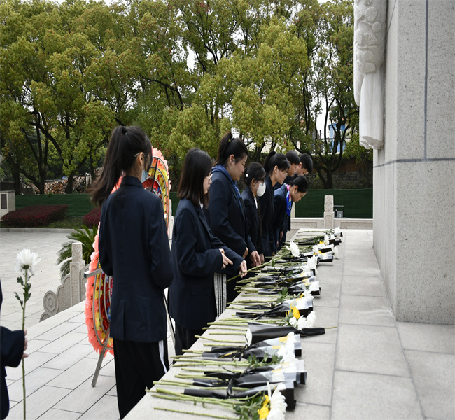 魂魄托日月,肝膽映河山。師生們懷著崇敬的心情來到無錫市革命烈士陵園,走過百米甬道,在“為國犧牲人民英雄紀念塔”前的金山石廣場列隊肅立,向紀念塔敬獻花圈,向英烈致以最深切的緬懷和最崇高的敬意。隨后,全體默哀,向千千萬萬為國捐軀的英雄兒女表示深切哀悼。莊嚴肅穆的儀式寄托著延綿不絕的哀思之情,也昭示著慨然前行的奮發(fā)之志。