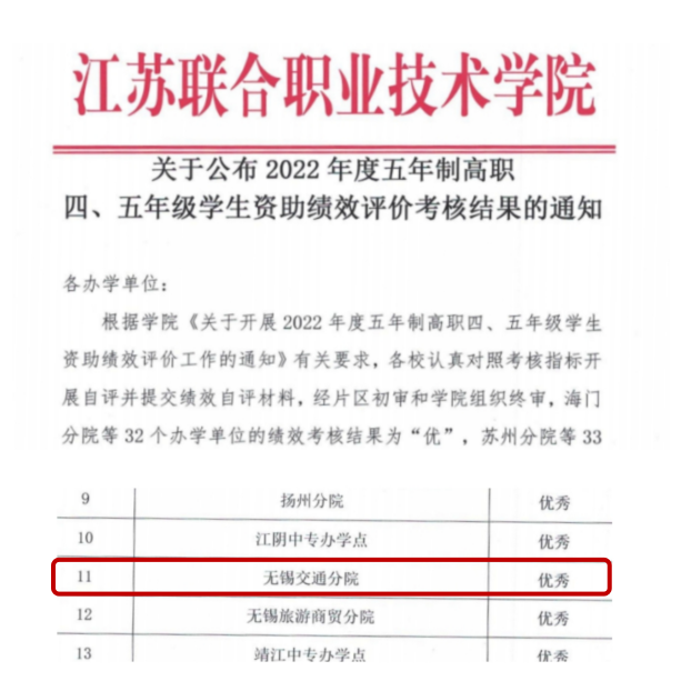 近日,江蘇聯(lián)合職業(yè)技術(shù)學(xué)院公布了2022年度五年制高職四、五年級(jí)學(xué)生資助績(jī)效考核結(jié)果,學(xué)校獲評(píng)“優(yōu)秀”等級(jí)。