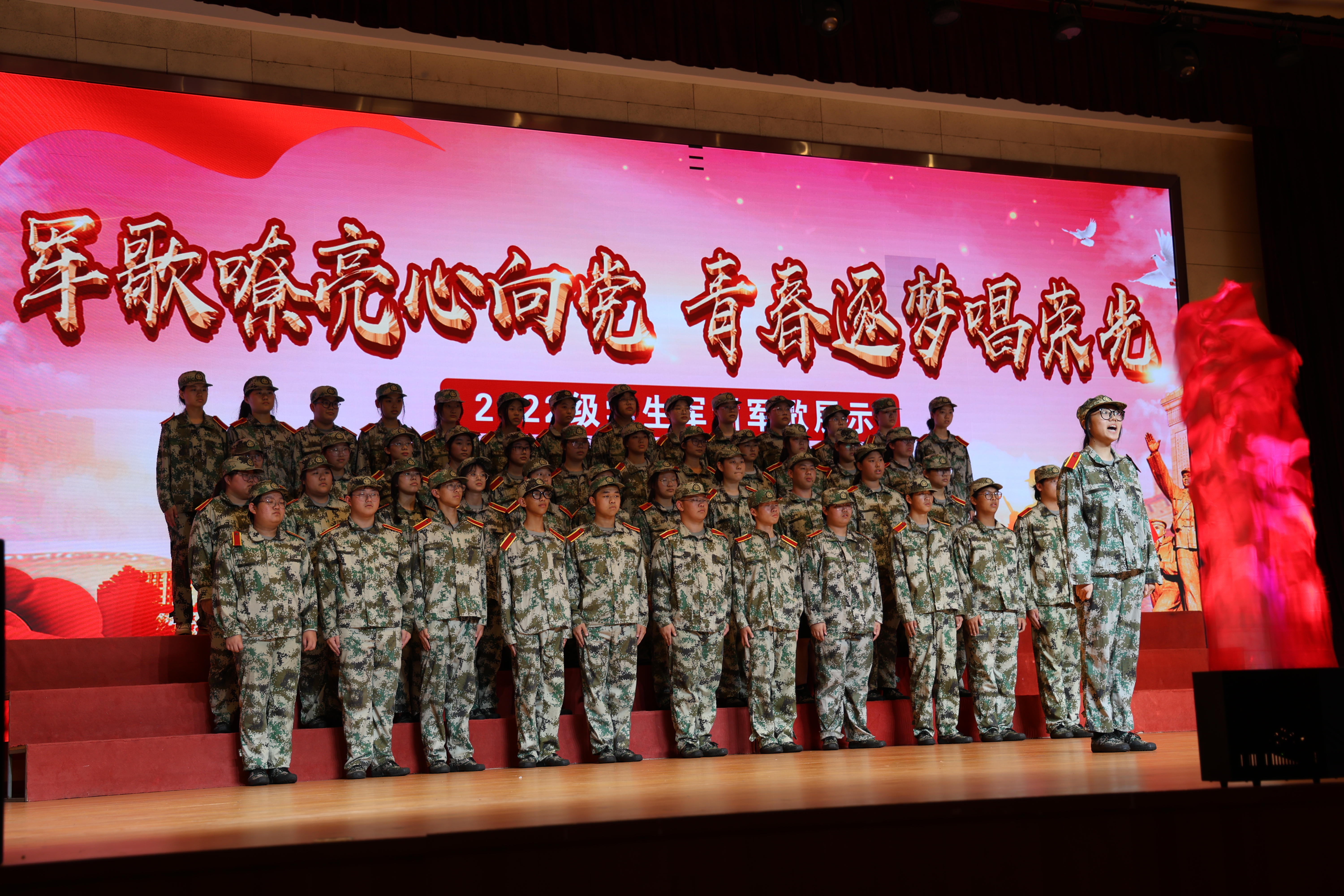 本次軍歌展示是對學(xué)生進(jìn)行愛國主義、集體主義和民族精神的生動教育。大氣磅礴的歌聲和旋律歌頌了中華民族自強不息的偉大精神、闊步向前的豪邁氣概,唱出了新時代青年對黨、對祖國、對社會主義的濃厚深情和熱情謳歌。