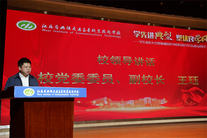 校黨委委員、副校長(zhǎng)王玨講話并宣布加強(qiáng)校風(fēng)學(xué)風(fēng)建設(shè)提升年活動(dòng)啟動(dòng)。他在講話中指出優(yōu)良的校風(fēng)學(xué)風(fēng)關(guān)系到學(xué)校人才培養(yǎng)的質(zhì)量、關(guān)系到學(xué)校的生存和發(fā)展。要以“六抓六促”助推校風(fēng)學(xué)風(fēng)建設(shè)長(zhǎng)遠(yuǎn)發(fā)展,即抓目標(biāo),促重點(diǎn);抓規(guī)范,促行為;抓課堂,促學(xué)習(xí);抓班風(fēng),促學(xué)風(fēng);抓考風(fēng),促紀(jì)律;抓活動(dòng),促信心。他希望任課教師、專兼職輔導(dǎo)員、團(tuán)學(xué)組織、學(xué)生干部等全員參與到校風(fēng)學(xué)風(fēng)建設(shè)中去,不斷加強(qiáng)學(xué)校內(nèi)涵建設(shè),為學(xué)校高質(zhì)量發(fā)展貢獻(xiàn)力量。