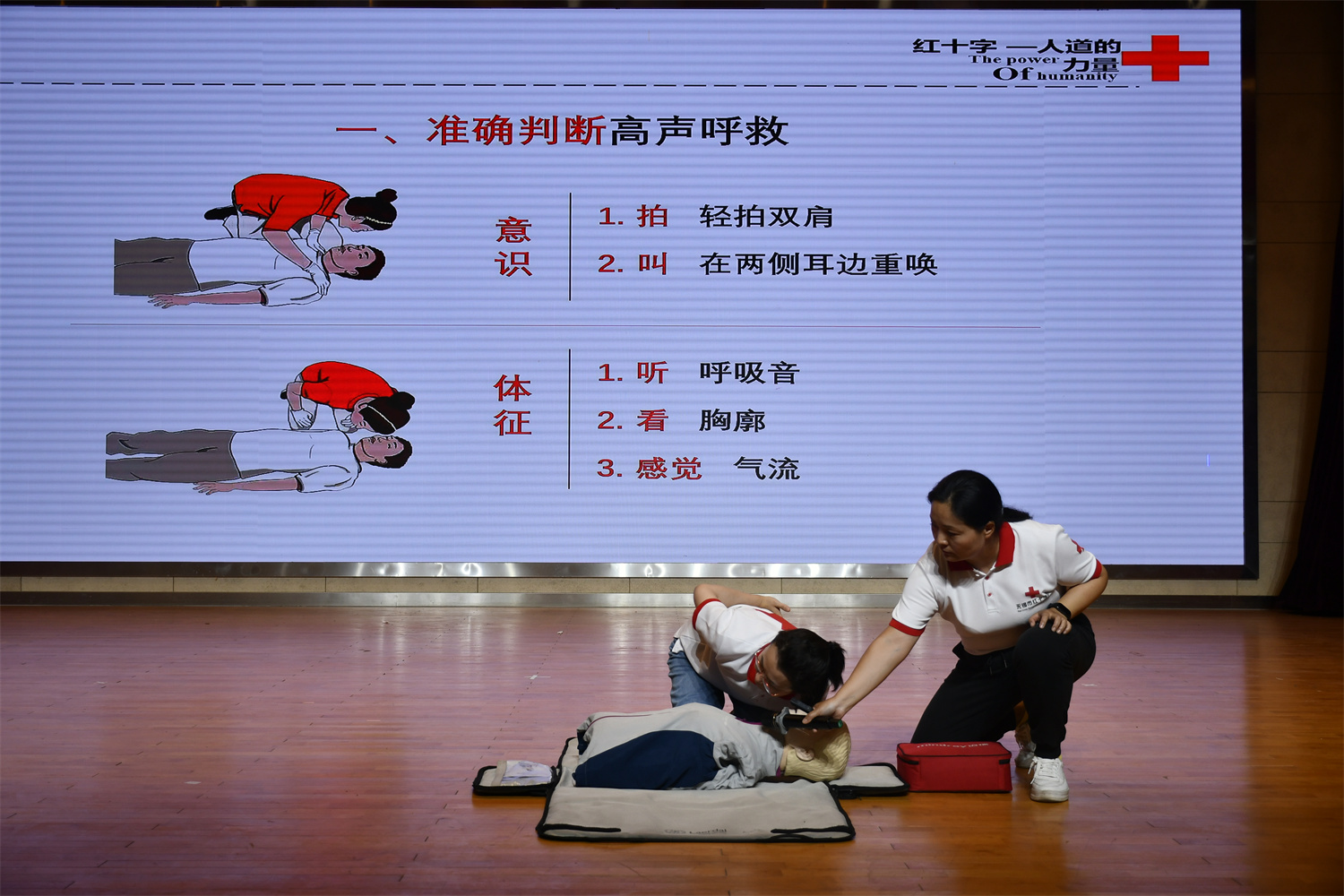 儀式結(jié)束后,周彬一行參觀了學(xué)校交通運(yùn)輸物聯(lián)網(wǎng)技術(shù)實(shí)訓(xùn)基地、江蘇交通運(yùn)輸行業(yè)船文化中心等。無錫市紅十字會救護(hù)師為600余名師生開展了應(yīng)急救護(hù)培訓(xùn),講解心肺復(fù)蘇、氣道梗阻的操作過程以及AED的操作流程。通過培訓(xùn)有效增強(qiáng)了師生應(yīng)急救護(hù)意識和自救互救能力。