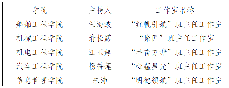 為充分發(fā)揮班主任工作室示范引領作用,根據《關于開展班主任工作室驗收工作的通知》要求,經學生工作委員會綜合評議,擬推薦以下工作室為學校首批班主任工作室,具體如下: