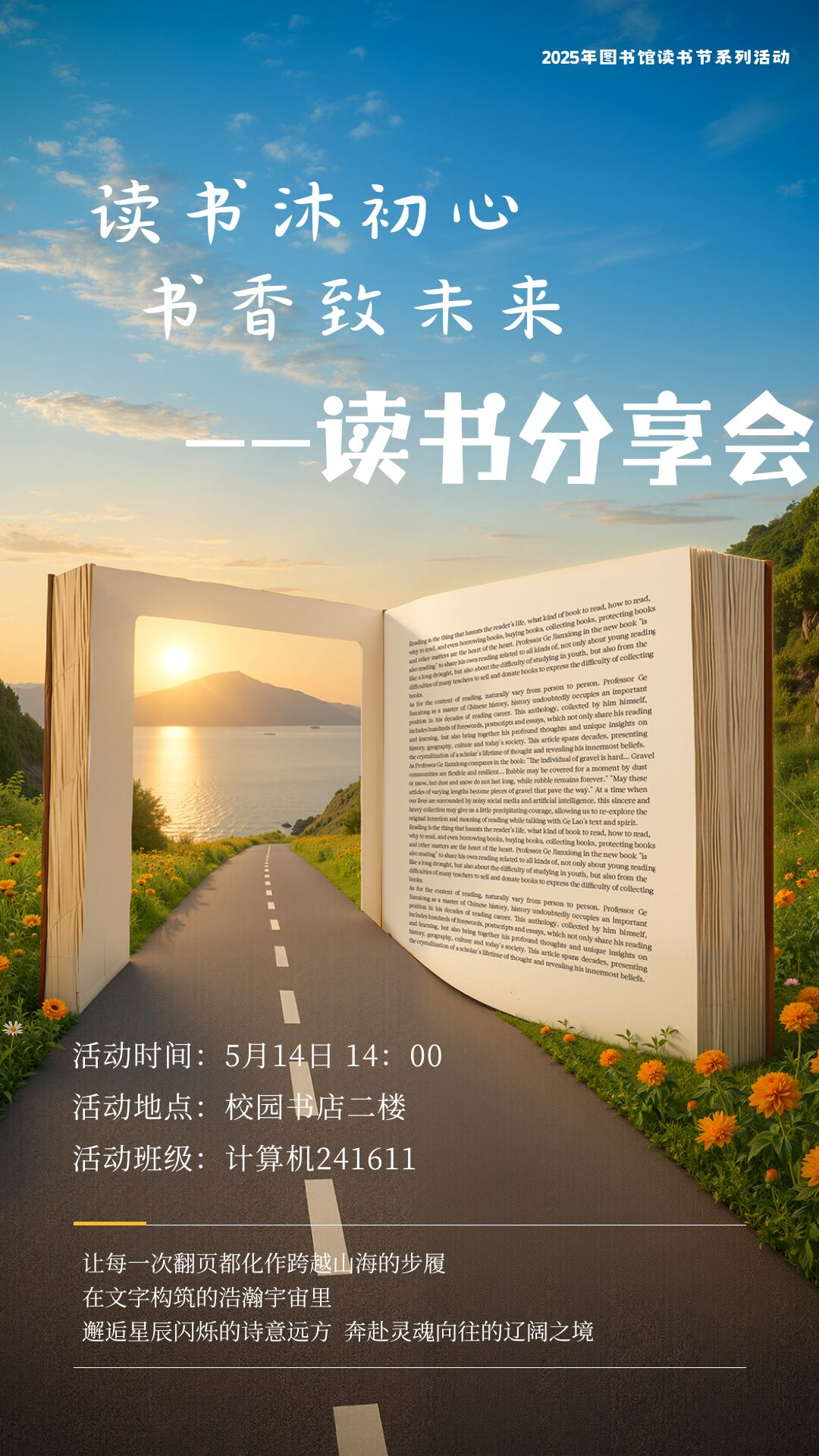 為營造書香校園氛圍,激發(fā)青年學(xué)子的閱讀熱情,5月14日下午,圖書館在校園書店二樓舉辦“閱讀沐初心,書香致未來”主題讀書分享會。本次活動是2025年校園讀書節(jié)系列活動下“館班共建”第二期,繼非遺傳承漆扇活動后,攜手信息管理學(xué)院學(xué)生,通過書籍分享與思想碰撞,共赴一場閱讀盛會。?
