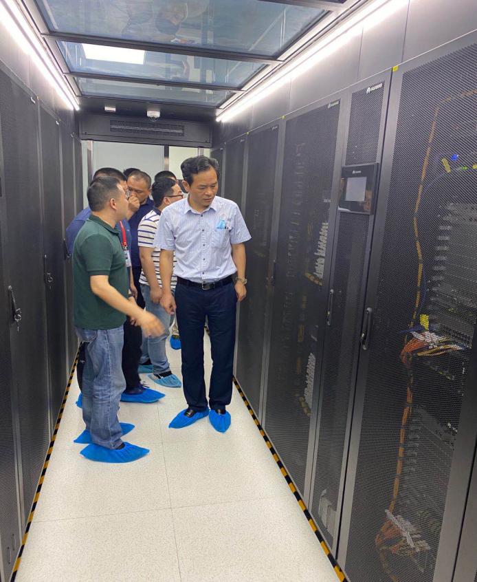無錫科技職業(yè)學(xué)院信息中心黃唯一主任熱情地接待了學(xué)校一行人,他詳細介紹了學(xué)院全光網(wǎng)架構(gòu)校園基礎(chǔ)網(wǎng)絡(luò)建設(shè)的情況并陪同我校一行參觀了學(xué)校校園數(shù)據(jù)中心。耿興華副校長介紹了學(xué)校智慧校園建設(shè)的基本情況,就如何開展校園基礎(chǔ)網(wǎng)絡(luò)升級改造工作進行了充分的交流。